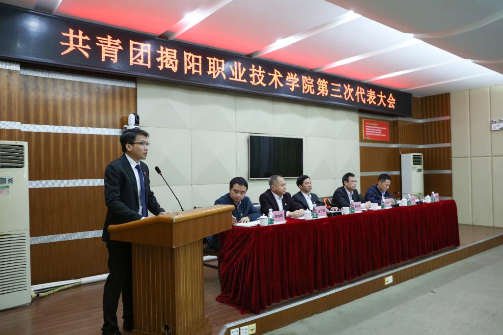 团市委书记陈颖聪代表团市委出席大会并发表讲话。陈颖聪表示,近年来,学校团委在学校党委的正确领导下,始终坚持以习近平新时代中国特色社会主义思想为指导,着力提升组织力、引领力、服务力,深化改革、从严治团,团结带领全校团员青年立足自身,开拓进取、扎实工作、奋发向上、无私奉献,服务学校,服务地方,为学校的发展和地方建设贡献青春力量,展现青春担当。陈颖聪也对学校共青团做好下一阶段工作提出三点希望:一是希望学校广大团员青年不断增强本领,不断提高认识,争做强国一代。二是希望学校青年学生多关注揭阳发展,努力为揭阳发展做贡献,在揭阳高质量发展中实现人生价值。三是希望学校团委当好青年引路人、知心人,感知青年温度和心声,在以往工作基础上总结经验,加强基层组织建设,走进青年群体,想大家之所想,急大家之所急。共青团学生要担起责任,做好表率,多做团委与普通青年的桥梁,反映青年心声。同时他勉励学校团委在现有工作基础上,争取更大成绩、更大作为。