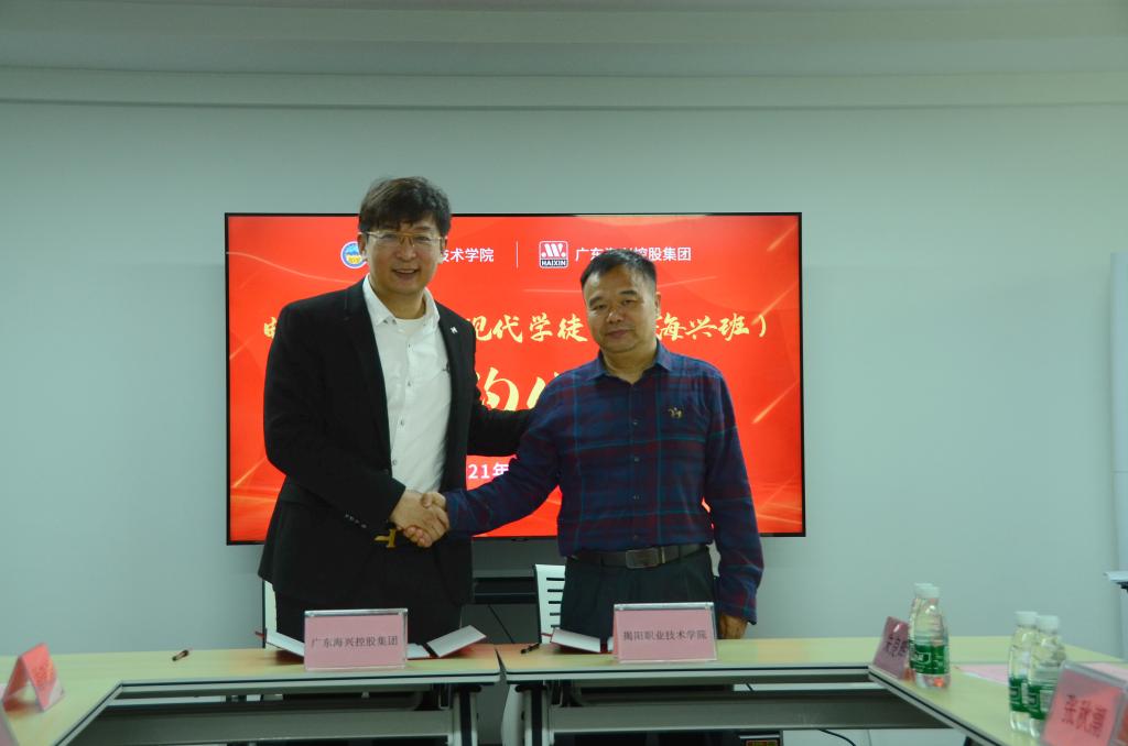随后,罗恢远与宋旭彬签订了电子商务专业现代学徒制(海兴班)协议书,李桂鑫与李桂珊签订了校外实训基地协议书,并举行授牌仪式。