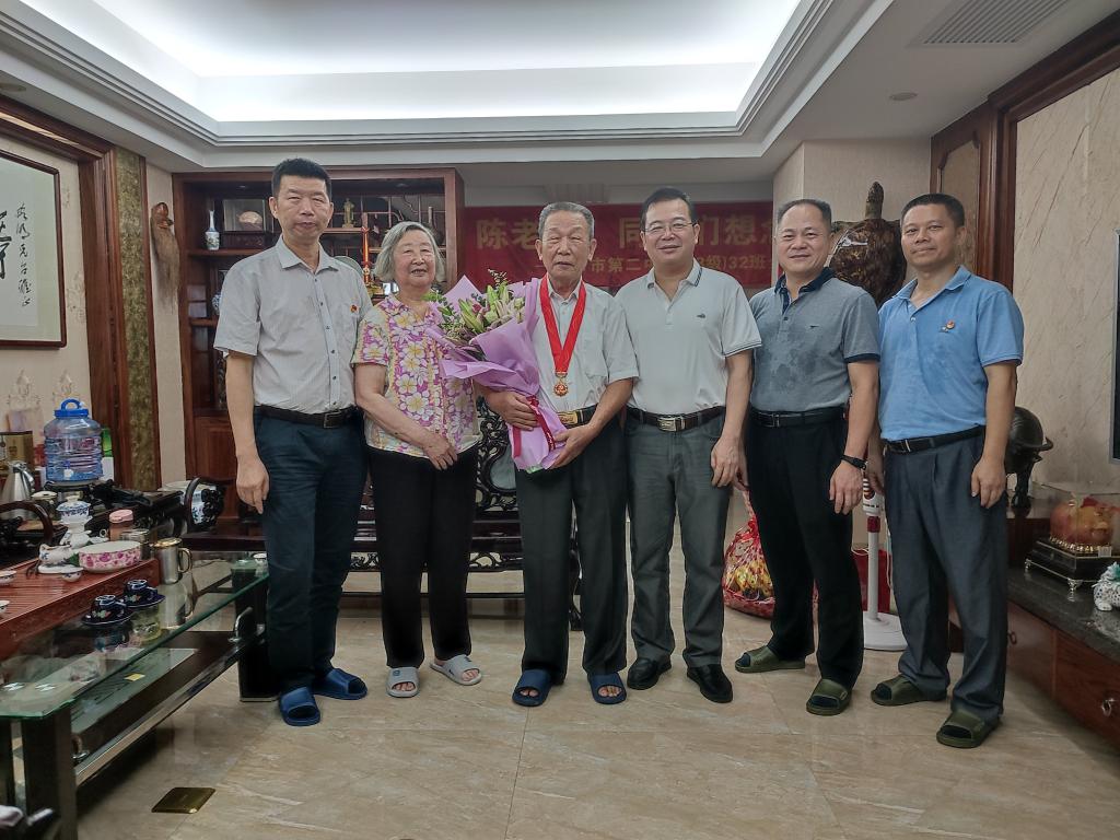 当天,李文升同志一行来到学校退休党员林略明和陈志恬夫妇家,关心慰问老同志的退休生活、身体健康情况,向两位老同志致以节日的问候,为林略明同志佩戴“光荣在党50年”纪念章。座谈中,李文升同志感谢两位老同志为学校建校初期作出的贡献,介绍了学校近年来的发展情况和未来的规划,邀请两位老同志多回校走走,感受学校近年来的变化,为学校的年轻人传经颂宝,助力高水平有特色职业学院发展。