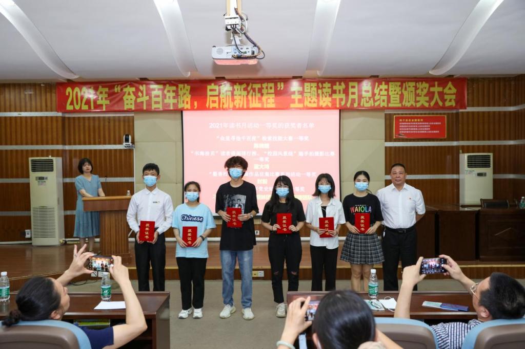 6月4日下午,德赢官网2021年主题读书月总结表彰大会在教学楼AT21会议室顺利举行。图书馆馆长、党支部书记陈文涛及图书馆全体老师,获奖学生和学生代表共计100多人参加活动。