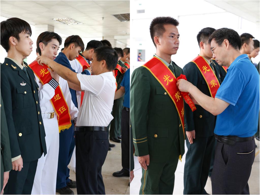 6月3日上午,德赢官网在行政楼举办退伍复学学生代表座谈会等活动,关爱退伍军人,听取他们的心声。座谈会前,学校党委副书记、院长罗恢远,学校党委副书记姚玉平为退伍复学学生代表披绶带和佩戴红花,并与他们合影留念。