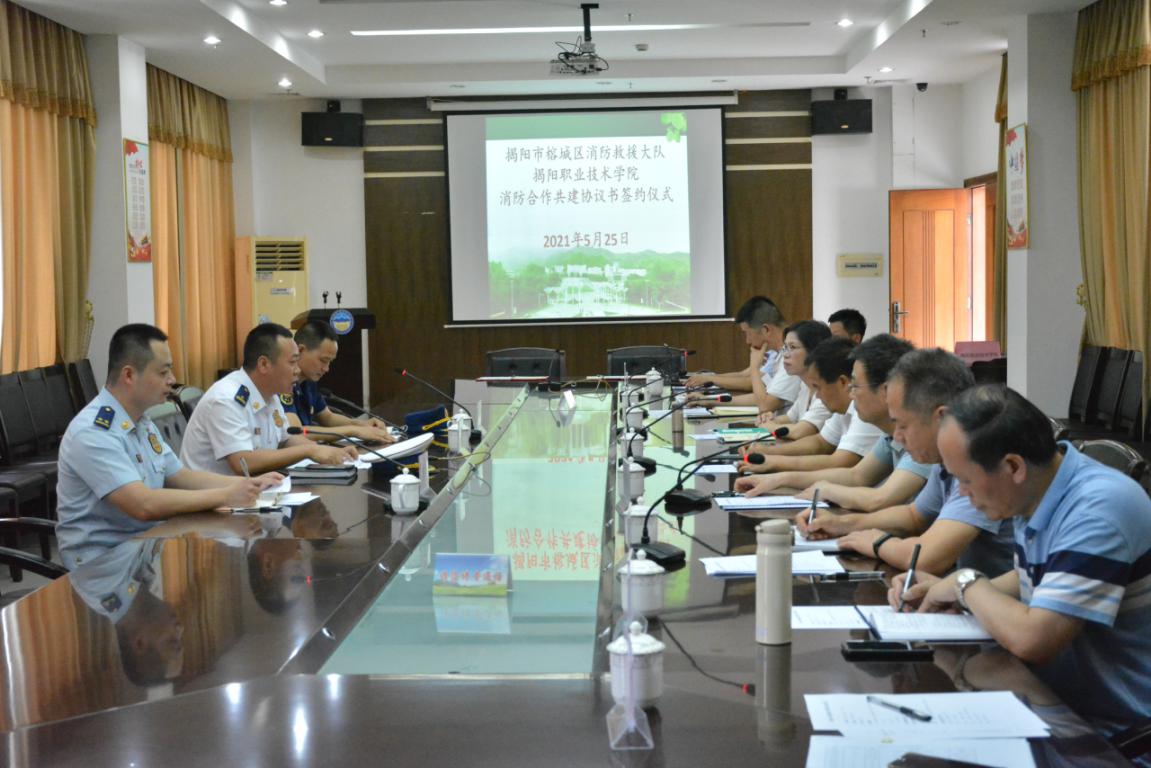 5月25日下午,德赢官网与揭阳市榕城区消防救援大队举行消防合作共建协议书签约仪式,仪式在德赢官网行政楼507会议室举行。揭阳市榕城区消防救援大队党委书记、政治教导员金斐,副大队长李金柱、榕城区仙桥消防救援站政治指导员李灏,学院院长罗恢远、副书记姚玉平、副院长刘瑞叶,以及学校党政办公室、组织人事处、教务处、学生工作处、后勤服务处、实训与信息中心等有关负责同志出席签约仪式。仪式由姚玉平副书记主持。