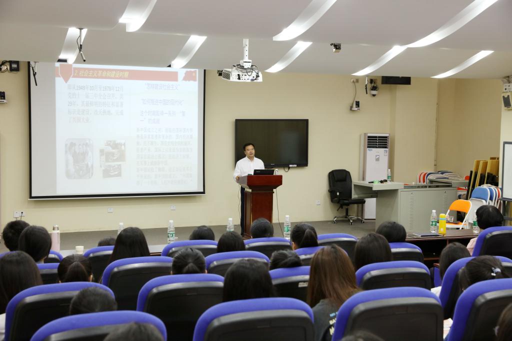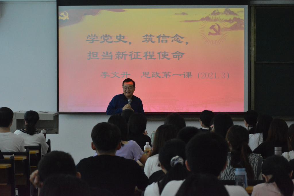 3月30日下午,李文升书记在学校教研楼203教室为应用化工、化妆品、商检等专业师生开讲“思政第一课”。本次课堂围绕“学党史,筑信念,担当新征程使命”主题展开,结合中国共产党百年辉煌历史,详细讲述“学习党史的重要意义”“中国共产党为什么‘能’”以及“如何传承历史精神、坚守历史使命”等三部分内容。他表示,我们要学史明理,就是要深刻理解“只有坚持和发展中国特色社会主义才能实现中华民族伟大复兴”的历史真理;要学史增信,就是要通过党史学习教育,增强“四个自信”;要学史力行,就是要在攻坚克难中激发斗争精神,增强自身本领,坚定以人民为中心的理念,提高自身的道德修养。李书记还号召学校青年学生,要志存高远,把个人梦和中国梦结合起来,脚踏实地,与新时代中国共成长,不畏艰难与挫折,注重习惯养成。