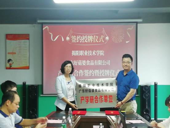 6月23日下午,德赢官网与广东好菇婆食品有限公司举行产学研合作签约暨授牌仪式。院长龚善初、副院长刘瑞叶、实训与信息中心主任李镇伟、生物工程系负责人向亚林,好菇婆公司总经理夏镇鸿、副总经理郑佳琳等参加了本次活动。