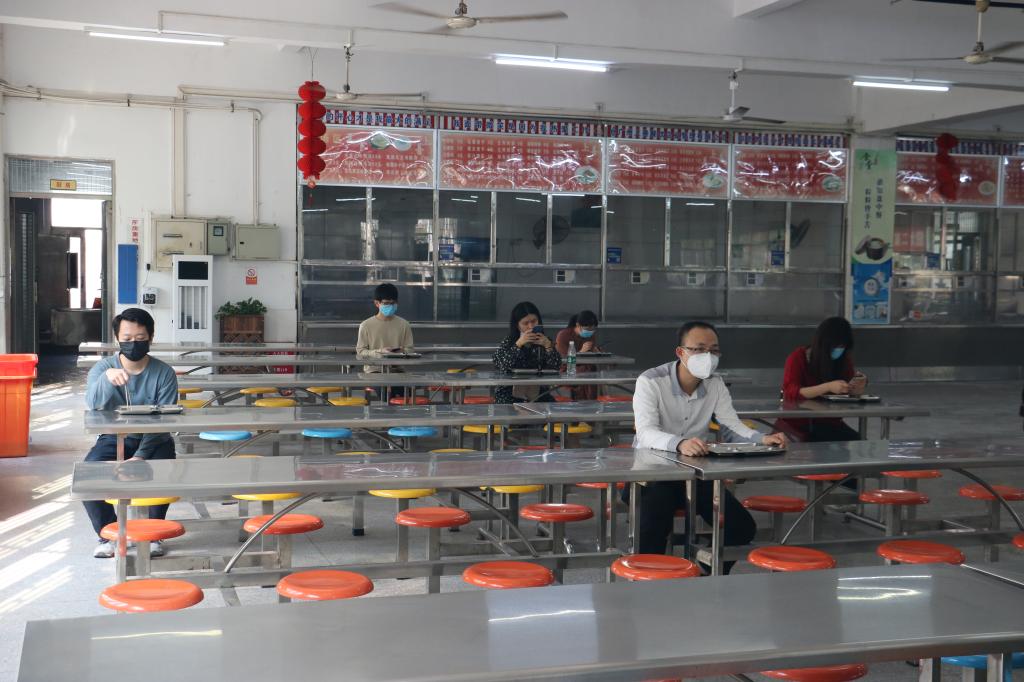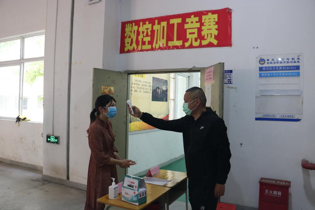 此次演练流程共有5个场景,分别包括:在校门口实施入校体温检测;在教学楼C栋204课室进行课堂教学组织;在实训楼B栋和模具综合实训室开展实验室疫情防控;在学生宿舍E栋开展学生宿舍疫情防控;在学校第二食堂模拟食堂学生就餐。