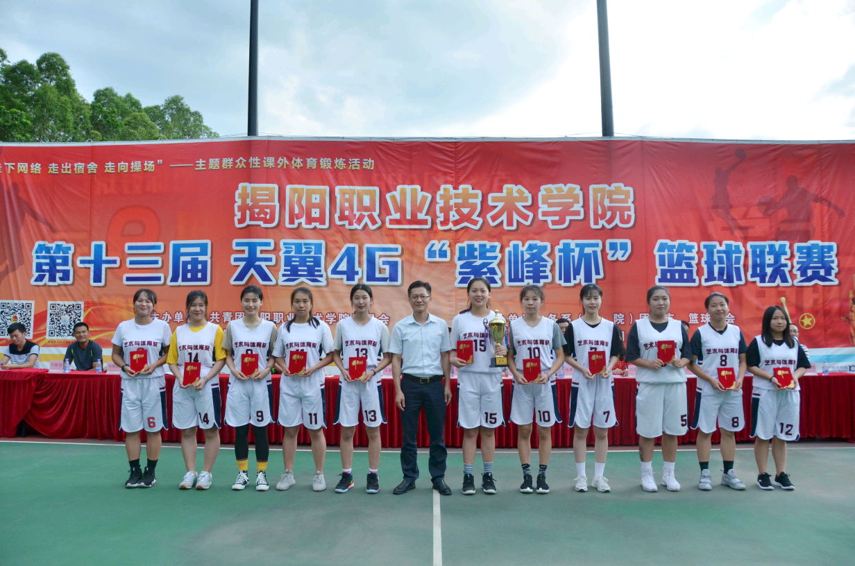 6月14日下午,德赢官网第十三届“紫峰杯”篮球赛决赛暨颁奖仪式在学校灯光篮球场举行。学校党委副书记、纪委书记姚玉平,中国电信揭阳公司总经理王彩玲,学校有关部门、党总支负责人和师生一同观看比赛,并为获奖代表和个人颁奖。经过激烈的角逐,机电系男篮代表队夺得了本次比赛的男篮冠军。