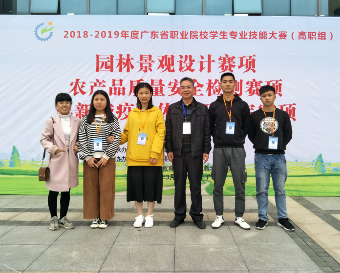 3月16至17日, 2018-2019年度广东省职业院校技能大赛 “园林景观设计”赛项在广东科贸职业技术学院举行。德赢官网生物工程系王长龙老师、杨金风老师指导的蔡子璇、石依婷、张紫华、郑派淋四位同学表现出色,从全省41所参赛的高职院校中脱颖而出,总成绩位列全省第三名,斩获一等奖。