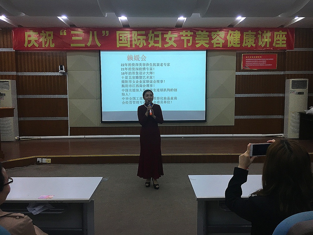 此次活动得到市妇联的支持,邀请了中国名媛佳人美容养生连锁机构的创始人赖媛会女士前来主讲,讲座围绕女性健康保健知识为大家进行了详细讲解。讲座深入浅出,生动有趣,融知识性、趣味性为一体,具有非常强的指导性。