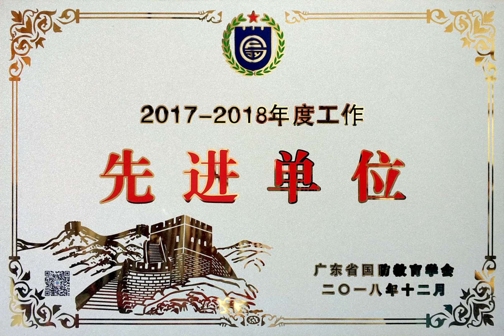2018年12月28日,“传承红色基因,汇聚强军力量”2018年全民国防教育峰会暨第四届广东国防教育学术年会在湛江举行。会议对2018年度广东省国防教育工作中做出显著成绩的先进单位和个人进行表彰,德赢官网荣获“2017—2018年度国防教育工作先进单位”荣誉称号。