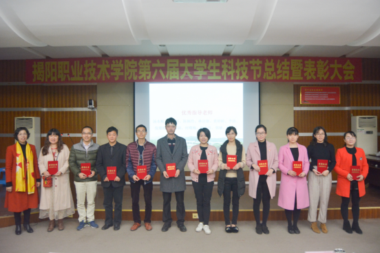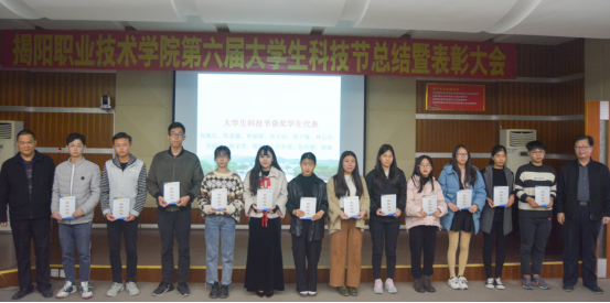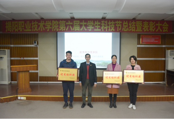 会议首先宣读了《关于表彰第六届大学生科技节先进集体和个人的决定》,本届大学生科技节共有239支学生队伍获奖,其中获得一等奖27队,共84人次;二等奖51队,共144人次;三等奖78队,共227人次,优秀奖83队,共257人次。随后学校团委会孙芬兰老师为“挑战杯”大学生课外学术科技作品竞赛获奖选手颁奖;科技与设备处杨培新处长、教务处杨伟权副处长为大学生科技节竞技类项目获奖学生代表颁奖;刘瑞叶副院长为优秀指导老师颁发获奖证书;龚善初院长为外语系、化学工程系、艺术与体育系颁发优秀组织奖。会议还观看了第六届大学生科技节活动总结视频。优秀组织奖获奖单位代表化学工程系倪珊梅老师在会上作交流发言。