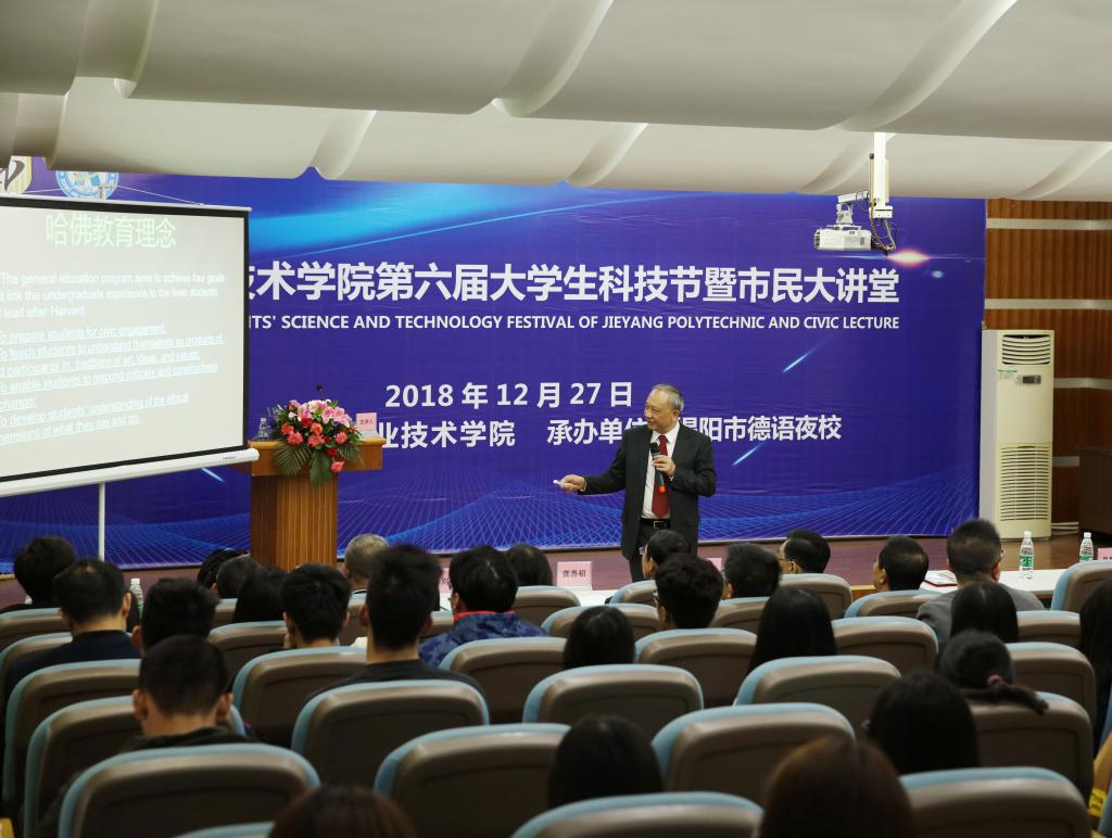 12月27日,德赢官网第六届大学生科技节暨德语夜校市民大讲堂(第26期)在慈云教学楼AT21隆重开讲!特邀来自美国耶鲁大学的黄艺耘教授做了题为《西方现代大学和科学的起源及其理念》的专题讲座。德赢AC米兰官网顾问、市文化界老前辈胡天民先生、揭阳市榕城区工会主席黄新华先生、学院龚善初院长、刘瑞叶副院长、师生代表、嘉宾以及市民等参加了讲座,讲座由龚善初院长主持。
