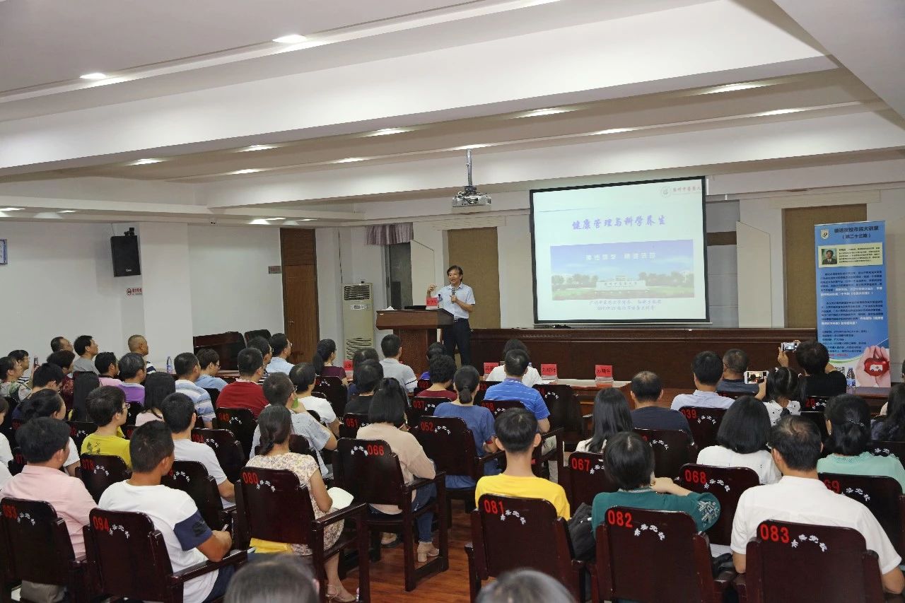 在讲座中,孙晓生教授围绕《健康管理与科学养生》的主题,从健康的新概念着手,再以古今中外的真实事件为例,深刻阐述了健康管理的四种模式以及中医养生原则与方法,同时,根据揭阳的本土特色,为广大市民提供了许多因地制宜的养生建议。孙晓生教授专业水平高,讲课幽默风趣,通俗易懂,贴近生活,极大地调动了现场气氛,讲座现场掌声不断!
