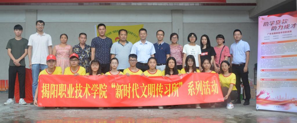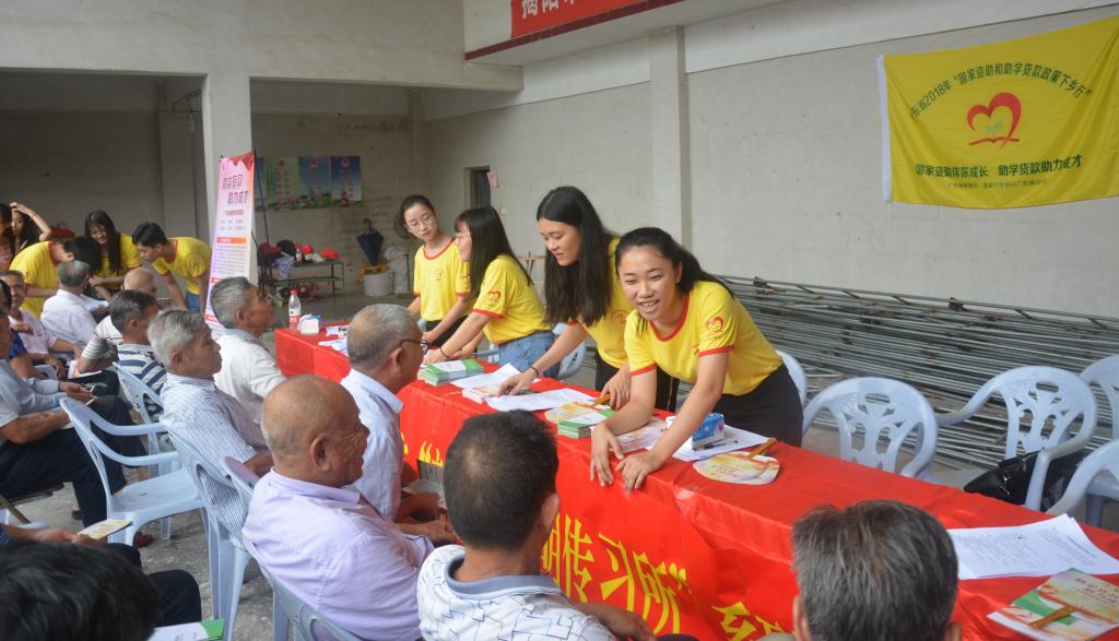 为全面贯彻党的十九大精神,广泛深入宣传党和国家教育资助政策,加大我省学生资助及助学贷款政策的宣传力度,广东省教育厅与国家开发银行广东省分行联合开展2018年“国家资助和助学贷款政策下乡行”活动。为积极响应省教育厅和国家开发银行号召,把国家资助和助学贷款政策带到广大农村,7月13号,由德赢官网学生工作处助学中心组织成立的“助力梦想,希望起航”宣传队到到揭西县龙潭镇开展“国家资助和助学贷款政策下乡行”活动。