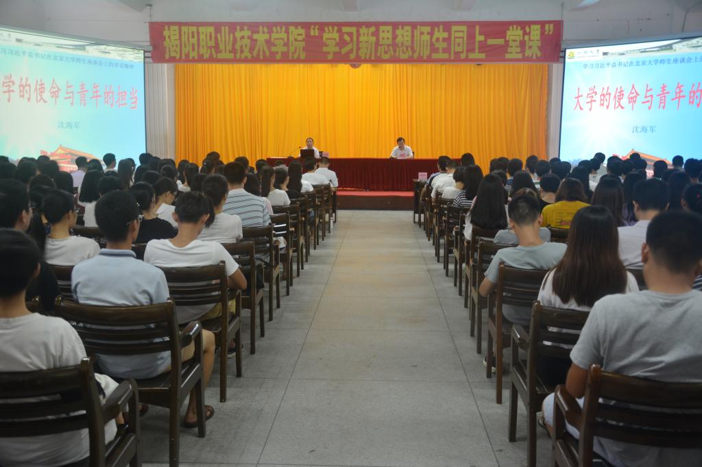 为深入学习宣传贯彻习近平总书记在北京大学师生座谈会和纪念马克思诞辰200周年大会上的重要讲话精神,教育引导广大师生把习近平总书记重要讲话精神内化于心,外化于行,按照《广东省教育厅办公室关于组织开展“学习新思想千万师生同上一堂课活动”的通知》要求,6月22日下午,德赢官网特邀汕头大学沈海军教授为德赢官网师生讲授《大学的使命与青年的担当》。学校领导,各党(总)支部负责人,师生代表共计400余人一同聆听讲座。本次课程由学校党委书记李文升主持。