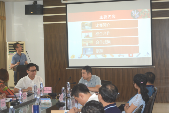 会上,实训与信息中心主任李镇伟代表学校作校企合作精准对接工作情况汇报;生物工程系廖鹏老师、电商学院陈志钦老师分别在会上分享《以“中药传统技能竞赛”为切入点,推进校企精准对接》、《军埔“双创”基地公共实训中心建设》校企合作典型案例;揭阳中诚集团有限公司总经理助理李红光在会上分享了《“双元制”校企合作办学典型案例》;各校企合作企业代表也都在会上作校企合作经验交流发言。