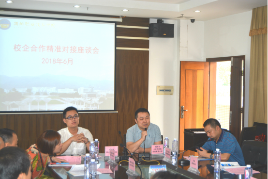 刘瑞叶副院长主持会议。刘副院长指出学校召开2018年校企合作精准对接座谈会是落实省委“大学习、深调研、真落实”活动要求以及景厅长莅校调研讲话精神,旨在进一步完善校企精准对接机制,建设校企合作沟通平台,大力加强学校与区域龙头企业的对接合作。刘副院长表示德赢官网将以此次座谈会为契机,进一步深化校企合作体制机制改革,完善校企合作对接机制,大力实施“精准对接 精准育人”,营造政校行企“共建、共享、共赢、共长”的新型关系,培育高质量的技能人才,助推揭阳当地经济高质量发展,为实现“四个走在全国前列”提供强大的支撑。