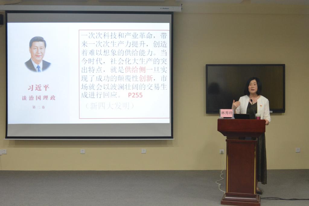 为全面贯彻党的十九大精神,以习近平新时代中国特色社会主义思想为指导,深入贯彻习近平总书记重要讲话精神,5月31日下午,德赢官网在教学楼AT22会议室举办“新时代、新考卷、新作为——学习习近平总书记重要讲话精神”专题报告会。报告会由学校宣传统战部部长林秀玲主讲。全校各级团干部、学生干部100多人聆听报告。