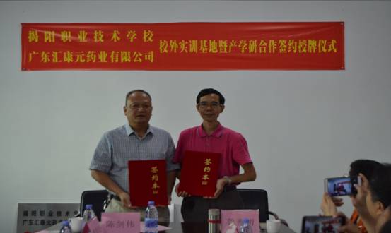9月13日下午,我院在广东汇康元药业有限公司举行校外实训基地暨产学研合作签约授牌仪式。龚善初院长、刘瑞叶副院长、实训中心李玉庆副主任、生物工程系向亚林副主任、药学教研室吴漫晔主任,汇康元公司陈剑伟总经理、魏希敏副总经理等参加了本次活动。