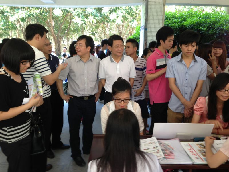揭阳市人社局陈伟强局长、吴锦波调研员、市就业服务管理局傅金钟局长和我院党委李文升书记、龚善初院长、姚玉平副院长等领导到现场指导,并与部份用人单位和毕业生亲切交谈。