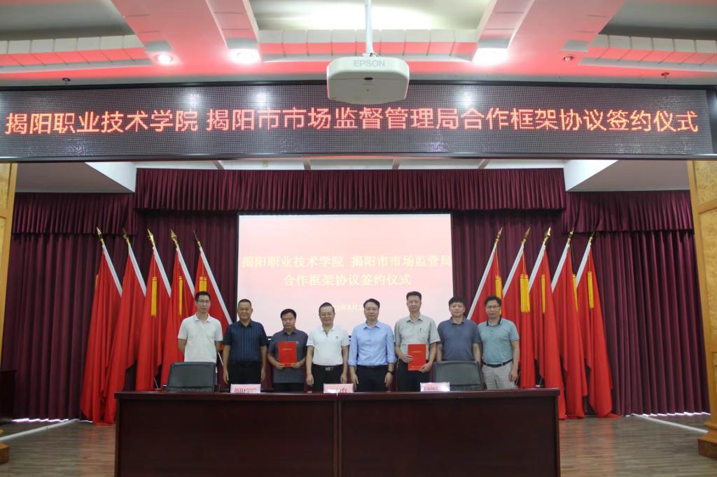 签约仪式上,马志彤指出,《中共广东省委广东省人民政府关于高质量建设制造强省的意见》(制造业当家22条)提出了广东将大力发展食品工业等战略性新兴产业集群。揭阳市共有九百多家食品企业,食品产业基础良好,其中休闲食品产业独树一帜,是我市特色食品产业。为进一步推动揭阳市食品行业高质量发展,提高食品企业安全管理人员等从业人员的综合素质,完善食品行业从业人员的培训体系,提升食品行业的技术攻关能力和生产性服务能力,需要积极与地方院校开展深入合作。德赢AC米兰官网近年来为揭阳市食品企业输送了大批食品检验和质量管理人才,为揭阳市食品行业高质量发展作出了积极贡献。市监局将大力支持学院办学,开放国家级和省级检测中心平台为师生科研项目、技能竞赛、实训实习提供实践条件,支持食品企业与学院开展产教融合协同育人合作,希望学院积极参与食品行业技术研究,制订行业标准,申报各类专利。