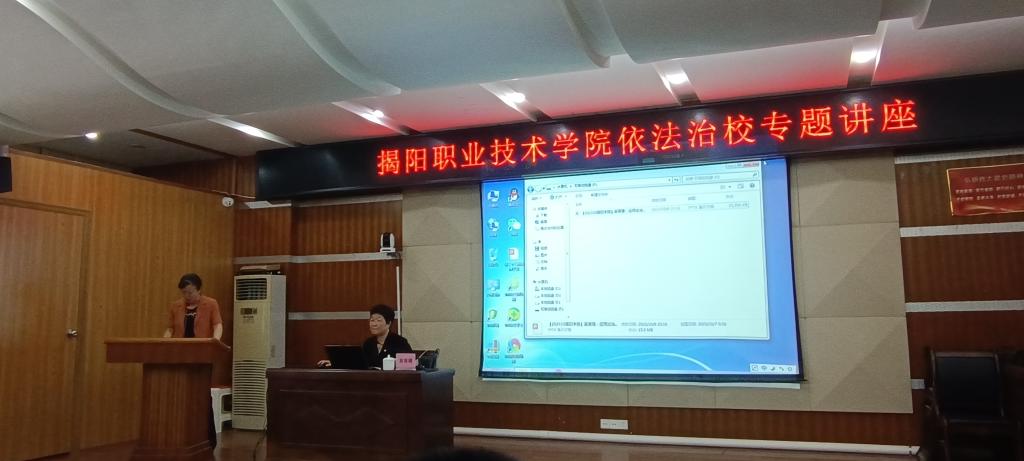 为深入学习贯彻党的二十大精神,贯彻落实习近平法治思想,推进全面提升依法治校水平,根据学校纪律教育学习月活动安排,10月7日,学校特邀省委党校(行政学院)法学教研部主任、副教授、硕士生导师吴育珊同志莅校作依法治校专题辅导。