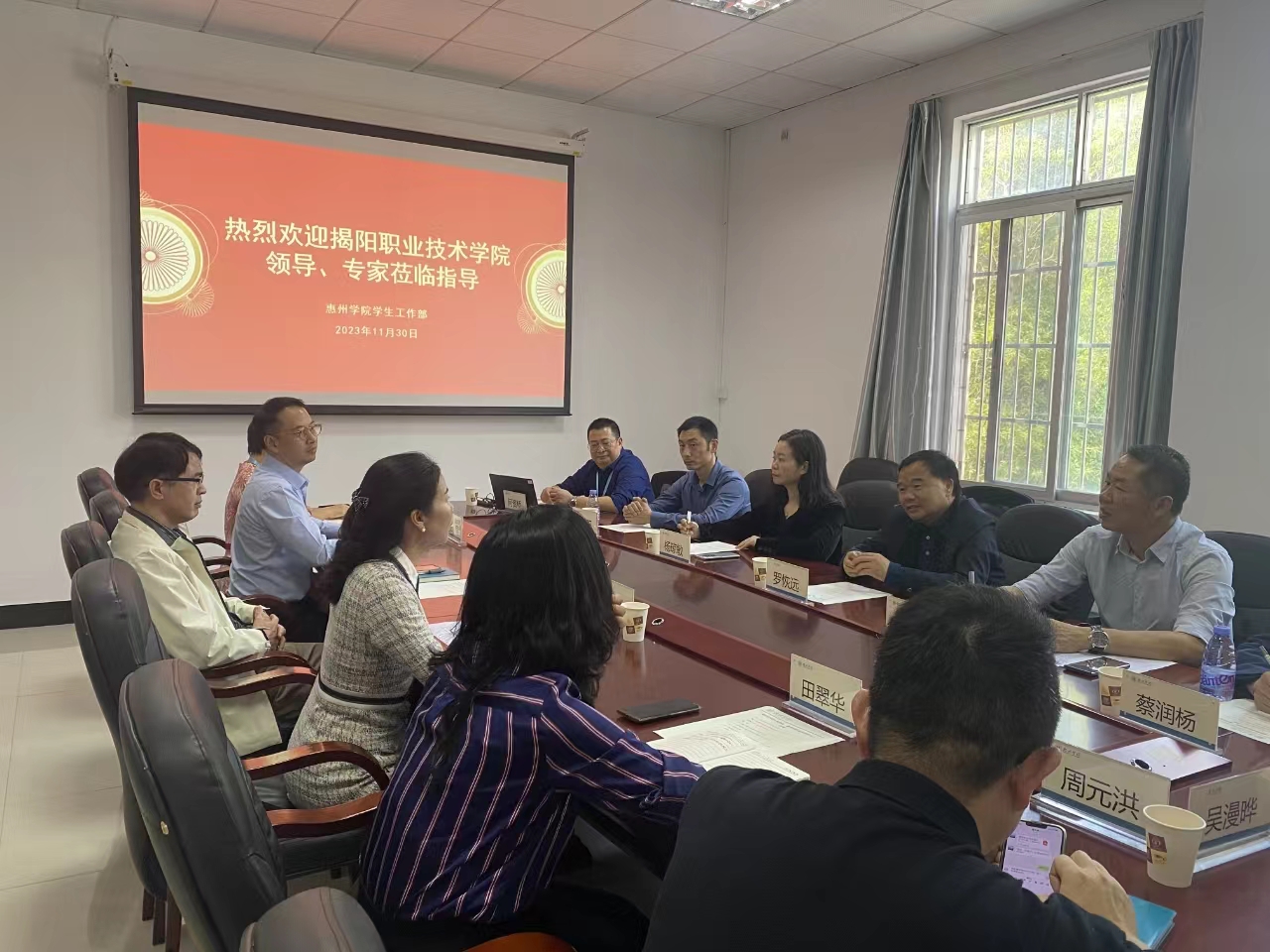 为进一步提升德赢官网心理健康教育工作水平,2023年11月30日至12月1日,学校党委副书记、院长罗恢远带领学生工作处负责人、心理健康教育与咨询中心教师及相关系党总支书记、辅导员一行12人,分别到惠州学院、惠州卫生职业技术学院开展主心理健康教育工作调研交流活动,惠州学院学工部部长胡萍、惠州卫生职业技术学院校长琚雄飞等参加了调研交流活动。