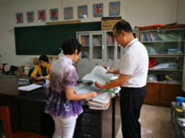 图1调研组与教学点相关负责人交流图2调研组查看教学资料