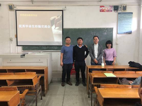 为帮助学生尽早做好职业生涯规划,积累就业经验,11月28日,思政部在教学楼C505教室顺利举办了思想政治教育专业优秀毕业生经验分享交流会,思政专业大三学生参加了此次交流会。交流会由教研室主任柯燕云老师主持,思政部洪曼丽主任、钟洁生书记、班主任陈莹老师出席交流会。