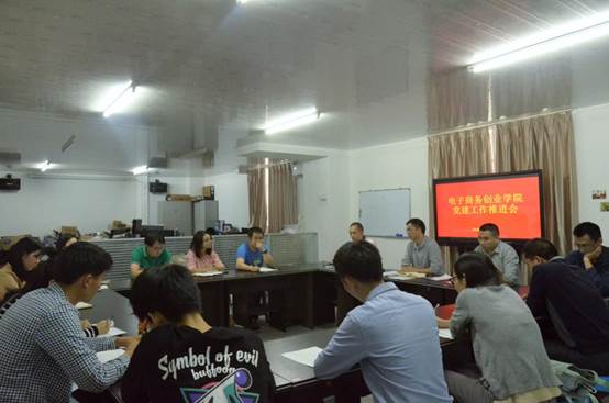 11月15日下午,电子商务创业学院在电子商务摄影实训室召开党建工作推进会。电子商务创业学院全体党员教师参加会议,会议由电子商务创业学院党总支书记兼副院长张秋潮主持。