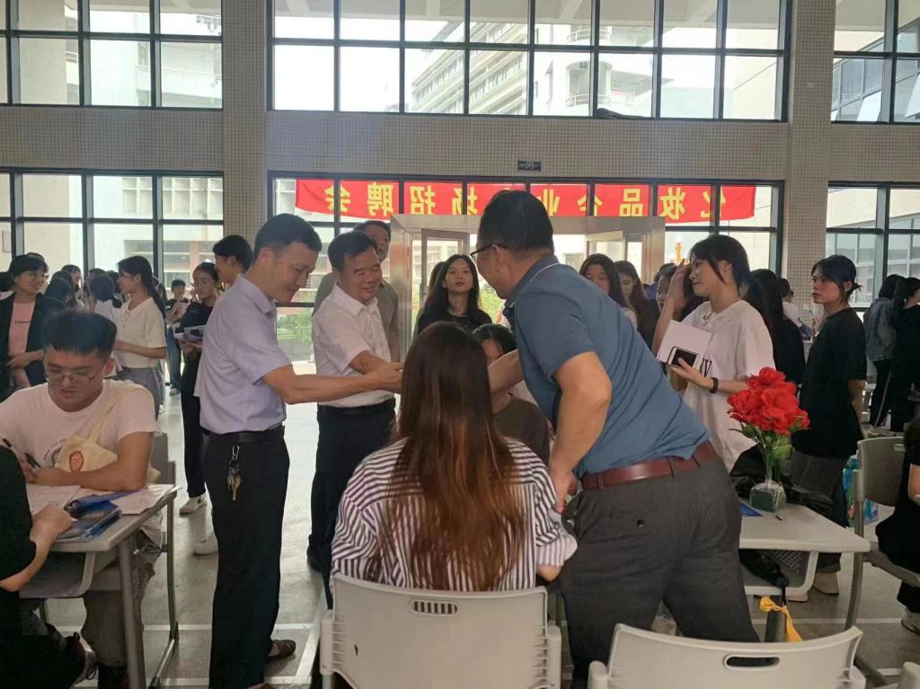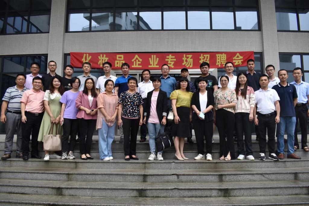 6月9日下午,化妆品企业专场招聘会在德赢官网教研楼二楼平台举行,广东雅丽洁精细化有限公司等10多家企业参会。院长罗恢远、招生就业处处长陈磊和化学工程系系主任江英志到场指导。