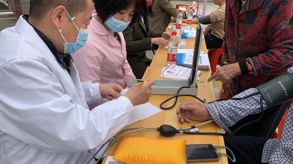 现场医务人员耐心为村民提供诊疗服务,测血糖、量血压、讲解常见病、多发病的预防诊治问题和日常保健知识,聆听就诊村民的既往病史,细心把脉问诊,细致解答村民问题,给出具体的诊疗建议和治疗方案,帮助村民及时掌握自己的健康情况,做到疾病早发现、早预防、早治疗,将健康理念带给广大村民。工作人员向到场村民发放《中老年常见病预防保健知识》《家庭常见病急救措施》等宣传手册,普及常见慢性病如高血压、高血脂、糖尿病、冠心病等的治疗、预防及日常保健、合理饮食、安全用药等健康知识,对防跌倒措施、意外伤害预防和自救等方面进行指导。