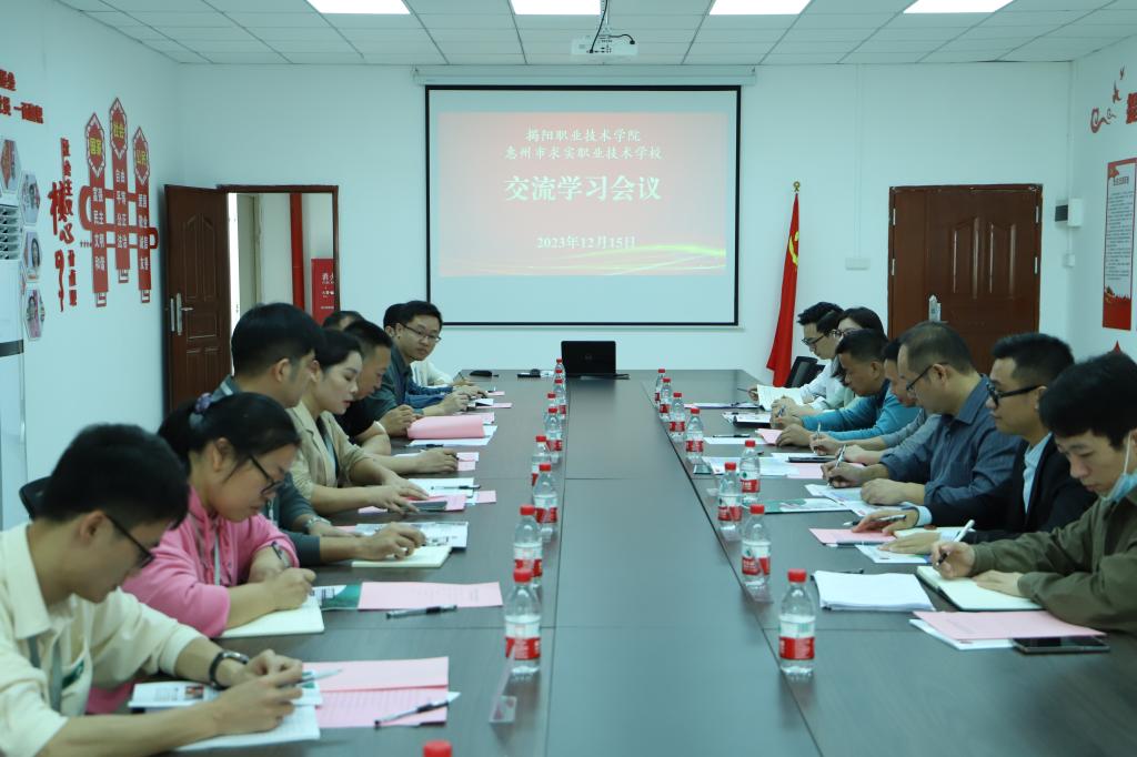 12月15日,副院长李桂鑫携招生就业处、艺术与体育系相关人员赴惠州求实职业技术学校进行工作交流。两校就艺术设计类专业“三二分段”联合办学、专业建设等方面进行了深入探讨。招生就业处负责人向亚林、艺术与体育系负责人巫会朋等一同参加了活动。