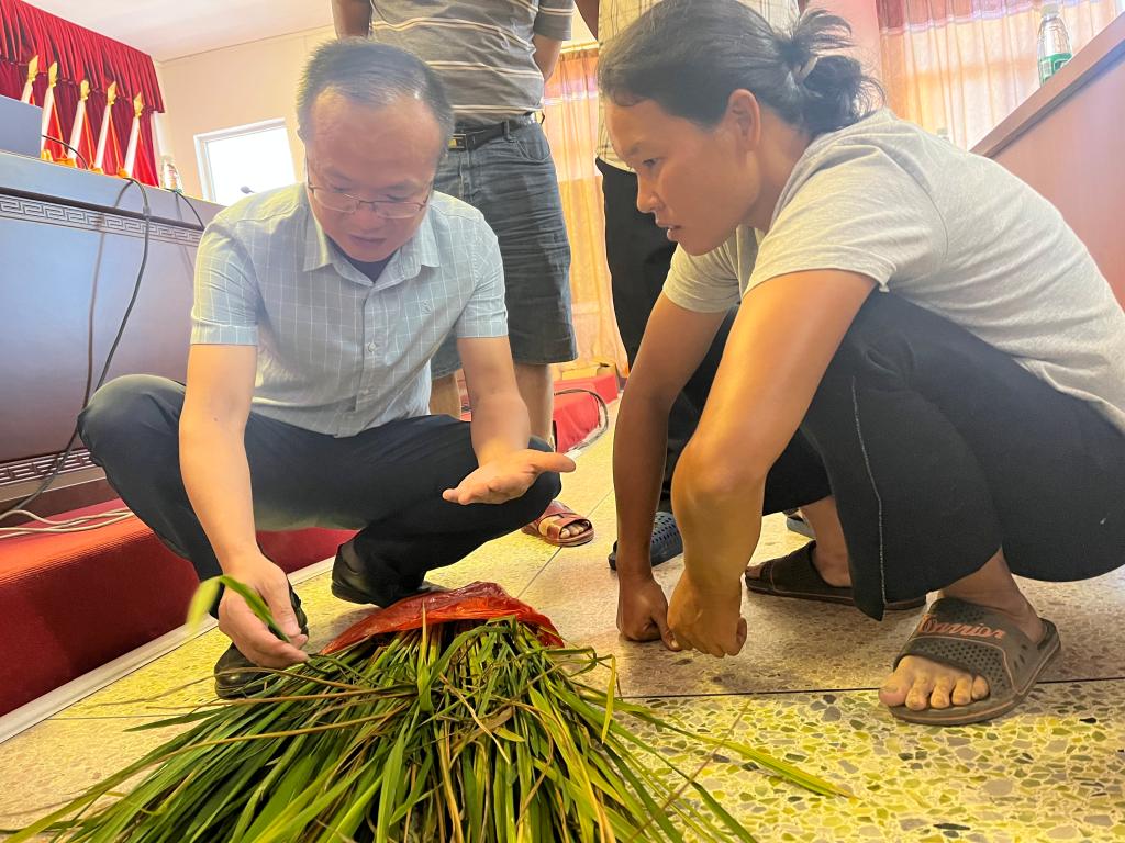 在龙潭镇为水稻种植户分析螟虫为害情况
