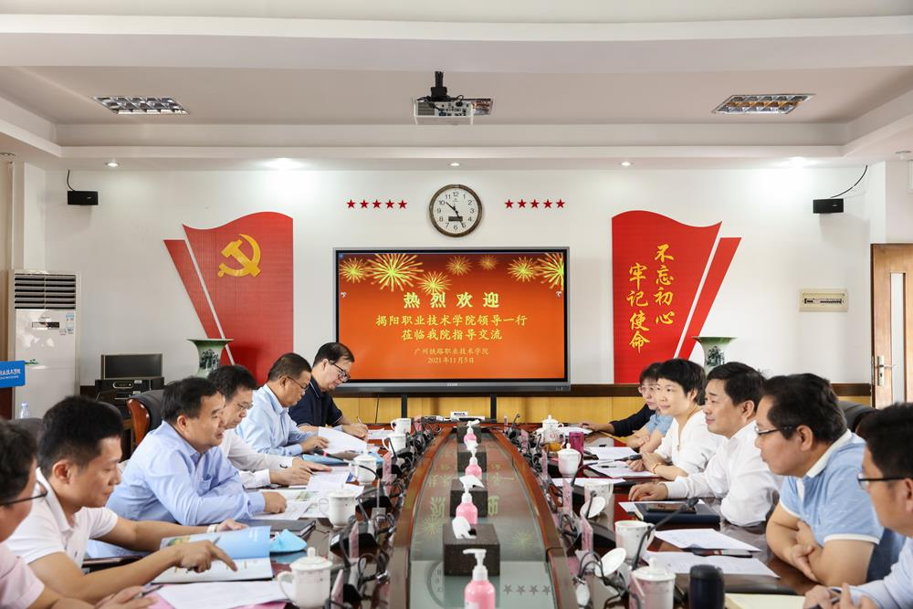 11月5日上午,学校党委副书记、院长罗恢远,党委副书记姚玉平带领党政办公室、组织人事处、教务处、学生工作处、科技设备处、质量办公室、师范教育系、生物工程系等部门负责人及工作人员到广州铁路职业技术学院交流学习,受到广州铁路职业技术学院领导的热情接待。广州铁路职业技术学院校长马仁听、党委副书记王超出席,党政办、组织人事处、宣传统战部、教务处、学生处、科技产业处、质量办等部门负责人参加座谈。