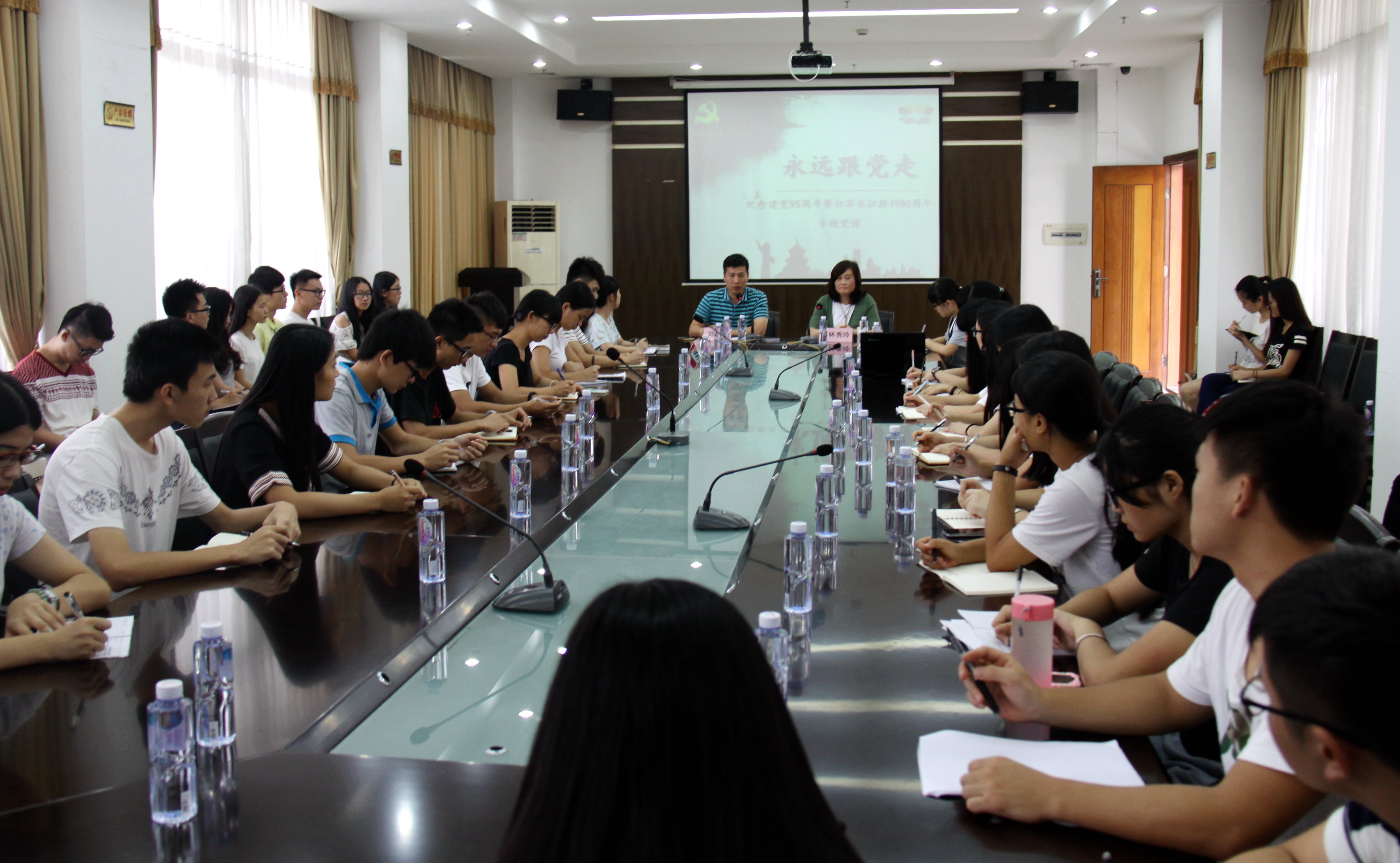 6月30日下午,在党的95周岁生日到来之际,结合“两学一做”学习教育,德赢官网在行政楼507会议室举行纪念建党95周年暨红军长征胜利80周年专题党课。学校宣传统战部长林秀玲副教授为学生党团员代表讲授了《坚定信念,永远跟党走》专题党课。活动由团委书记郑骋主持。 授课中,林部长用生动的语言和丰富精彩的视频资料和大家一起重温党九十五周年的光辉历程。她指出,在党九十五周年风雨兼程的壮丽诗篇中,我们青年人要铭记没有共产党就没有新中国,今天的幸福生活是无数先烈用青春、热血和生命铸就的。我们要好好珍惜、继往开来、勇于担当。同时,我们更要读懂中国共产党人之所以能够从小到大、由弱到强,是因为有马克思主义为指导,中国共产党人坚定共产主义和社会主义的理想信念。带领中国人民坚持走中国特色社会主义道路。青年是祖国的未来,林部长寄望广大青年大学生要坚定理想信念,永远跟党走。青年大学生要做改革发展的参与者,而不做旁观者,争当社会主义核心价值观的模范践行者,勇于担当历史使命。 用青春激情,创造无愧于时代的业绩。