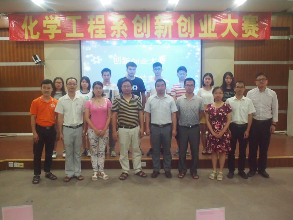 为培养和提升我系学生的创造精神、创新意识和创业能力,6月1日下午,由化学工程系举办的创新创业大赛决赛在AT21隆重举行。此次比赛的评委老师有:经管系朱良辉副主任、黄淯斌老师,化工系江英志主任、赖少坤书记、王宜民老师、林壮森老师、陈关涛老师。参加比赛活动的有化工系陈敏杰老师、刘淑媛老师、倪珊梅老师、李思慧老师等,院学生会代表、社团联合会代表、青年媒体中心代表、院广播站代表、各系部代表以及化工系全体同学。此次比赛由林丹洁,卓梓灿主持。