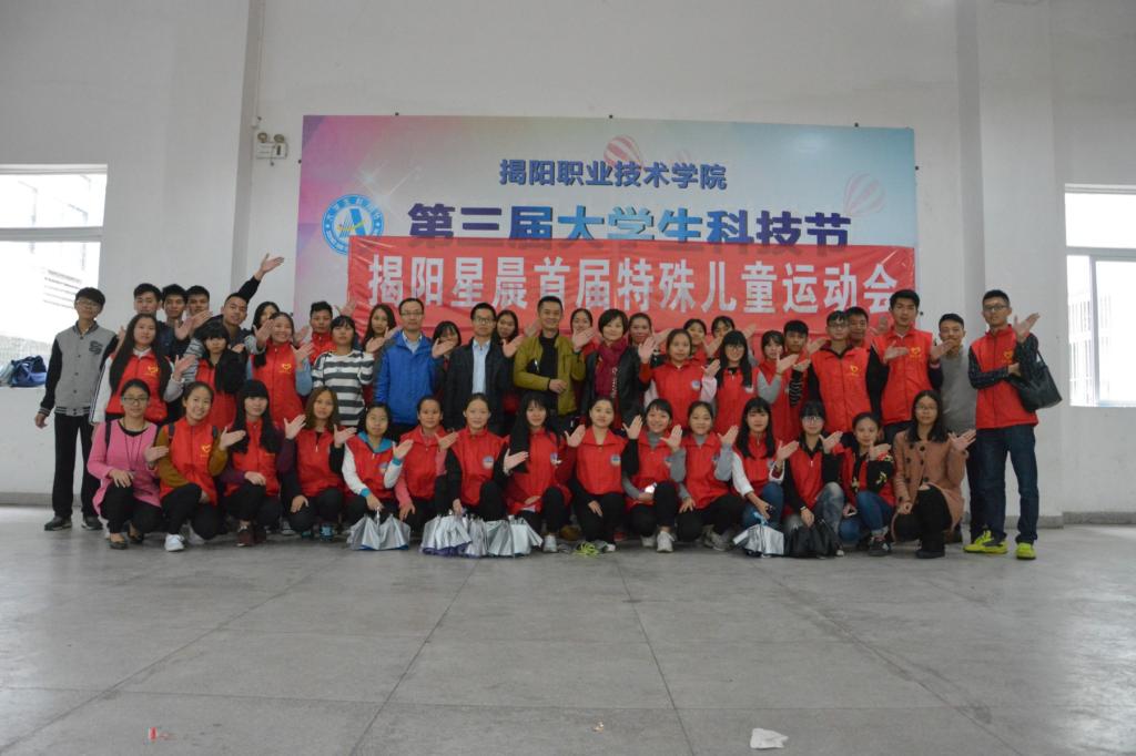 每年的12月3日是“国际残疾人日”,在这个特殊日子来临之际,为努力帮助自闭症儿童康复心智,融入社会,我院联合揭阳星晨自闭症儿童康复中心在我院举办特殊儿童运动会。11月26日上午,特殊儿童运动会开幕式在我院朝阳广场隆重举行,出席开幕式的领导、来宾有:榕城区区政府林少佳副区长、榕城区残疾人联合会姚庆生理事长、榕城区残疾人联合会钟奕华副理事长、揭阳星晨自闭症康复中心负责人和黄理事长、德赢AC米兰官网化学工程系党总支赖少坤书记、化学工程系陈敏杰老师等,参与活动的还有孩子家长、德赢AC米兰官网化学工程系蓝星志愿者、师范教育系学前教育部分同学、揭阳星晨自闭症儿童康复中心、榕东星晨幼儿园师生等。