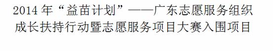 据悉,由团省委、省文明办、省民政厅、省残联、省志愿者联合会等单位联合开展的2014年“益苗计划”——广东志愿服务组织成长扶持行动暨志愿服务项目大赛,以“志愿搭把手,公益创梦想”为主题,以志愿公益创投模式,在社区、农村、高校等分领域、分类别遴选推广一批示范项目,扶持一批培育项目,通过项目资助、培训指导、督导评估等方式支持我省约150个优秀志愿公益组织发展壮大,其中民间志愿公益社会组织不低于40%。 “益苗计划”组委会将对本次入围项目给予经费支持和跟踪扶持,并委托第三方专业机构对受资助项目的经费使用情况和实施成效进行审计和评估。