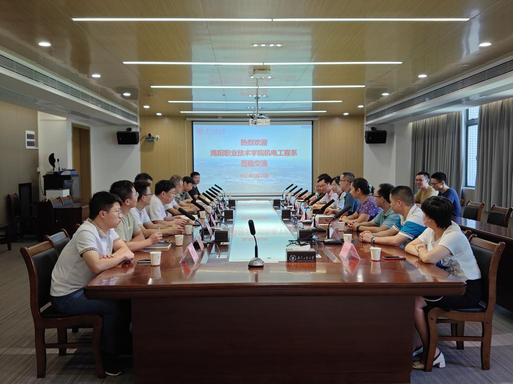 为更好地进行学科专业群建设,加强与邻近高校交流并促进双方共同发展,9月27日下午,学校机电工程系负责人林若波、机电工程系党总支书记黄婷婷一行15人组成交流团到访广东工业大学揭阳校区,与广东工业大学揭阳校区智能制造工程系进行了深层次交流。