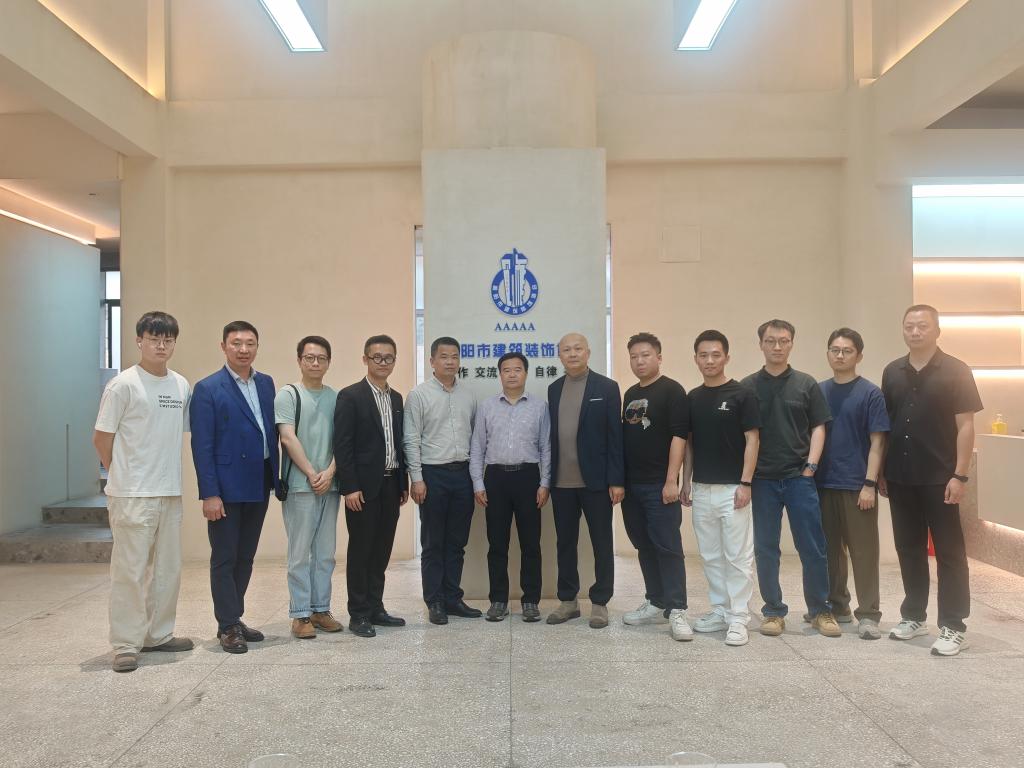 随后,一行人来到揭阳市建筑装饰协会,会长郭晓林代表揭阳市建筑装饰协会对罗恢远一行的到来表示热烈欢迎,他指出揭装协与学院的合作已有十余年,包含从日常教学、设计竞赛、学生实习、毕业生就业、公益基金等方面都有紧密的协作,希望在今后能掀起校企合作的新篇章。罗恢远对揭阳市建筑装饰协会对德赢官网设计类专业的大力支持表示感谢,他谈到,揭阳地区建筑装饰设计类企业数量多、口碑好,这为德赢官网室内艺术设计等专业的开办提供了良好的社会土壤与企业环境,校企双方应大胆拓展产学研协同育人的模式,例如谋划校企合作项目工作室、共同进行课程设计及教材编写、进一步拓宽“设计师进校园”活动的规模,让更多优秀设计师与学生进行长期稳定的互动交流,同时也希望专业能为揭阳地区培养更多的新生代设计师,为揭阳做出更多人民喜爱的设计作品。
