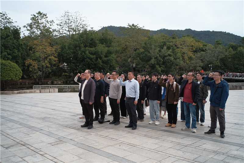 上午,队伍抵达梅州市叶剑英纪念园。在纪念园广场的鲜红党旗下,全体党员整齐列队,庄严重温入党誓词。既是对革命先辈的深切缅怀,也表达了党员们坚守初心使命、为教育事业和民族复兴不懈奋斗的坚定决心。