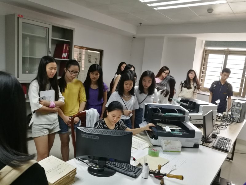 早上9点40分,全体成员乘坐校车出发,于10点10分到达市档案局,并受到工作人员的热情迎接,带领同学们先后参观了档案信息管理中心、档案培训室、档案史料展厅、库区等。在参观过程中,同学们认真听从工作人员的安排,悉心请教专业人员,工作人员也细心为同学们一一讲解,现场气氛和谐。首先参观的是档案信息管理中心,同学们在这里了解档案的目录编排,存档等知识。随后到达多功能报告厅,观看揭阳市档案局关于2017年“6.9”国际档案日的宣传影片,影片为同学们介绍了日常档案分类、装订等归档步骤。稍作休息后,同学们在工作人员的指引下,前往五楼信息化技术室、整理编目室。首先,现场工作人员为同学们演示如何扫描、消毒灭虫、装订文书等,告诉同学们在处理文书时应注意保持文书的原件不受破坏,在存档时要从文书的日期、保存日期等方面考虑并进行有序存放。此外,同学们还参观了存档案的库区,了解了档案存放的环境,工作人员向同学们介绍了库区的温度、湿度,重点向同学们讲解库区的窗户建造。工作人员强调库区的窗户不同于其他窗户,主要在于其是由三层暗色的玻璃组成,目的是使阳光不能直接照射到档案文书。其表示,这是库区首次对外开放,同学们很荣幸拥有这次机会,希望大家好好珍惜并利用这次机会多学到一些专业知识。与此同时,同学们纷纷表示:通过此次活动,进一步了解档案管理知识,提高了自身的专业技能,受益匪浅。最后,同学们到中共广东党组织档案使料展,广东省中小学档案教育社会实践基地、揭阳市爱国主义教育基地进行参观学习,在此过程中了解中共广东党组织的发展历程、揭阳党史、揭阳市貌等。