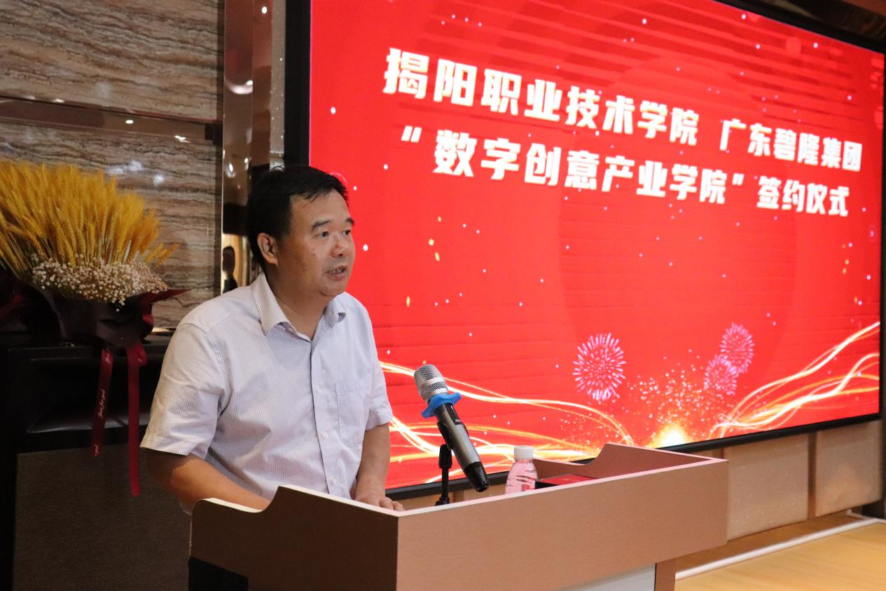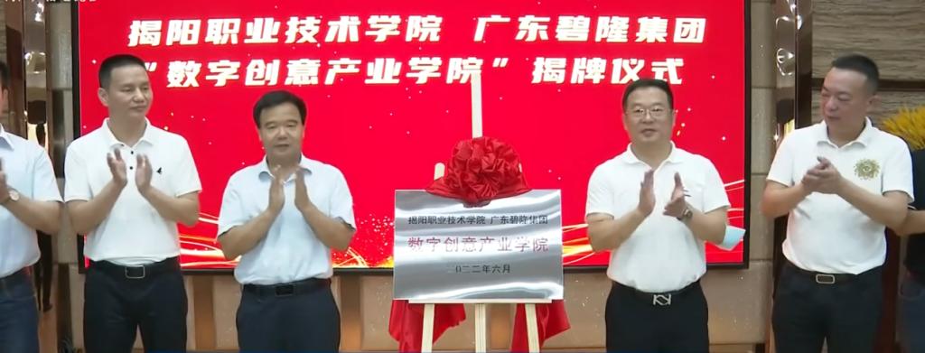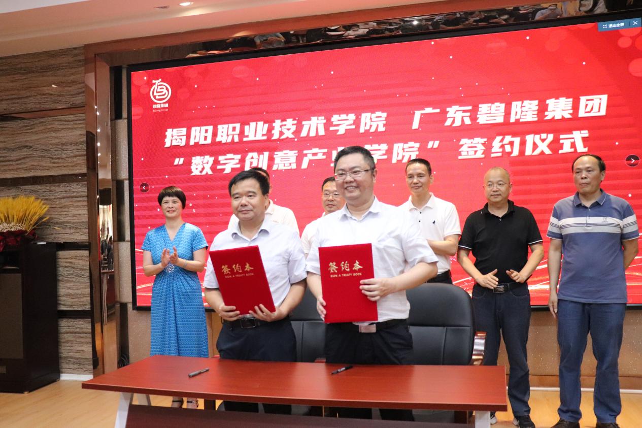 为深入贯彻落实《国家职业教育改革实施方案》,切实推进德赢官网产教融合人才培养模式改革工作,健全多元化办学格局,进一步提高学生的职业能力和就业竞争力,更好地服务区域经济发展,6月27日,德赢AC米兰官网数字创意产业学院揭牌签约暨产教融合协同育人签约仪式在广东碧隆集团隆重举行。揭阳市产业园管委会、广电网络公司等单位参加签约仪式,德赢官网罗恢远院长、李桂鑫副院长、教务处处长黄英铭、电子商务创业学院党总支书记兼副院长张秋潮、机电工程系主任孙培明等参加签约仪式。