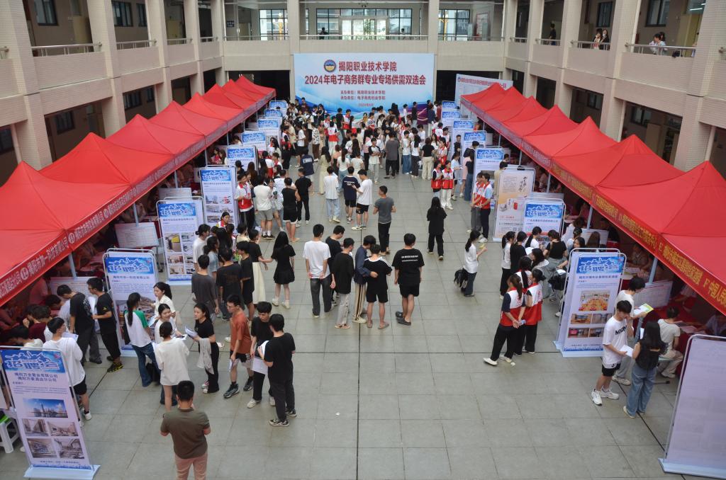 据悉,本次双选会近500名学生参与,共计33家企业参会,涵盖电商直播、电商运营、短视频及文案策划、跨境电商、酒店管理、教育培训等多个行业,提供了80个岗位、近350个职位供学生选择。